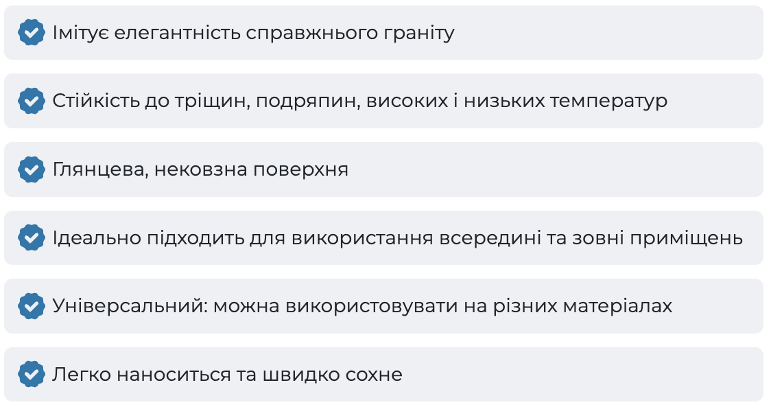 - Забезпечує довговічність і стійкість до механічних пошкоджень.