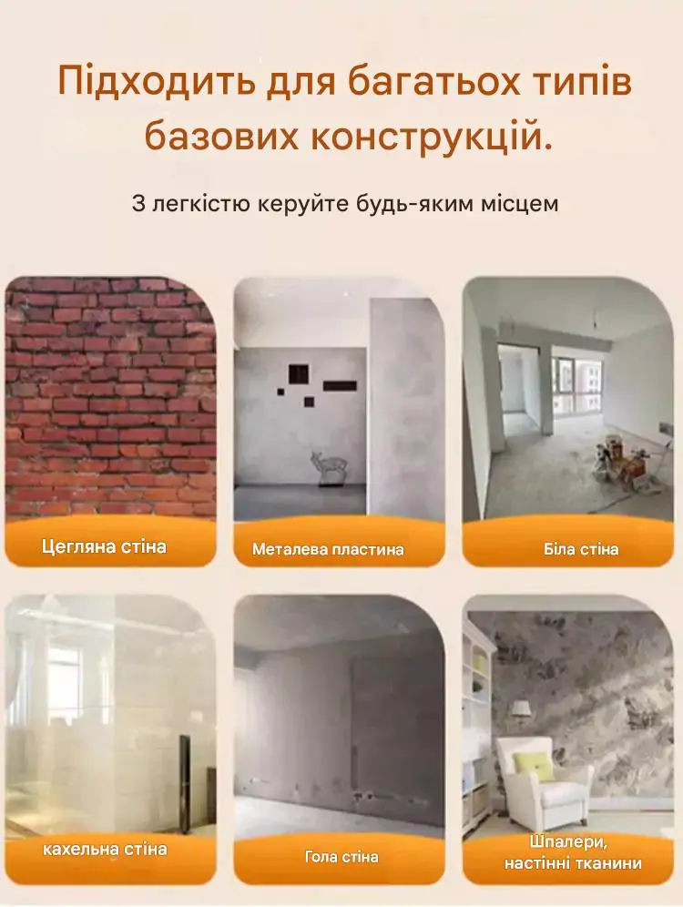 - Підходить для різних типів поверхонь, від стін до підлог.